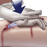 – COMPRESIÓN DIRECTA. Coge gasas (si son estériles mejor), colócalas sobre el punto de sangrado y presiona fuerte. Si no tienes gasas a mano puedes usar cualquier textil lo más limpio posible: ropa, trapo, pañuelo… Si se empapa mucho significa que no estás apretando en el lugar adecuado. En este caso, retira los apósitos, coge nuevos e intenta localizar el punto de sangrado para comprimirlo. Si es una herida muy grande puedes rellenarla con gasas y luego hacer la presión. Presiona al menos durante diez minutos (con ambas manos si es necesario). En casos de hipotermia el tiempo de coagulación se alarga mucho más de 10 minutos. Y en personas que estén tomando anticoagulantes puede que este método no cohíba la hemorragia y deberemos presionar hasta que vengan las asistencias, usar hemostáticos o realizar un torniquete si la herida es en una extremidad.